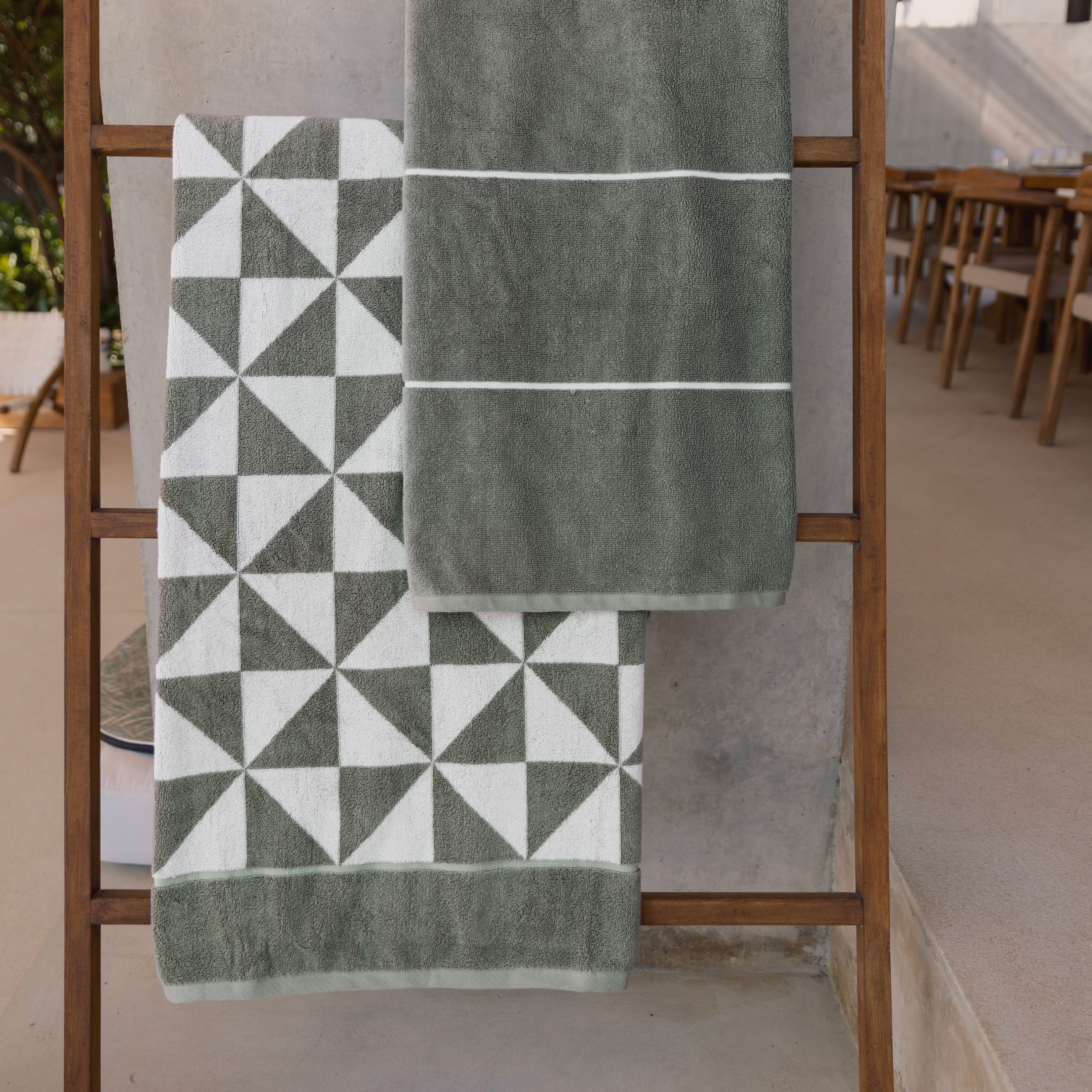 The Umbra towel's triangular motif brings a quiet sense of movement to your everyday ritual.