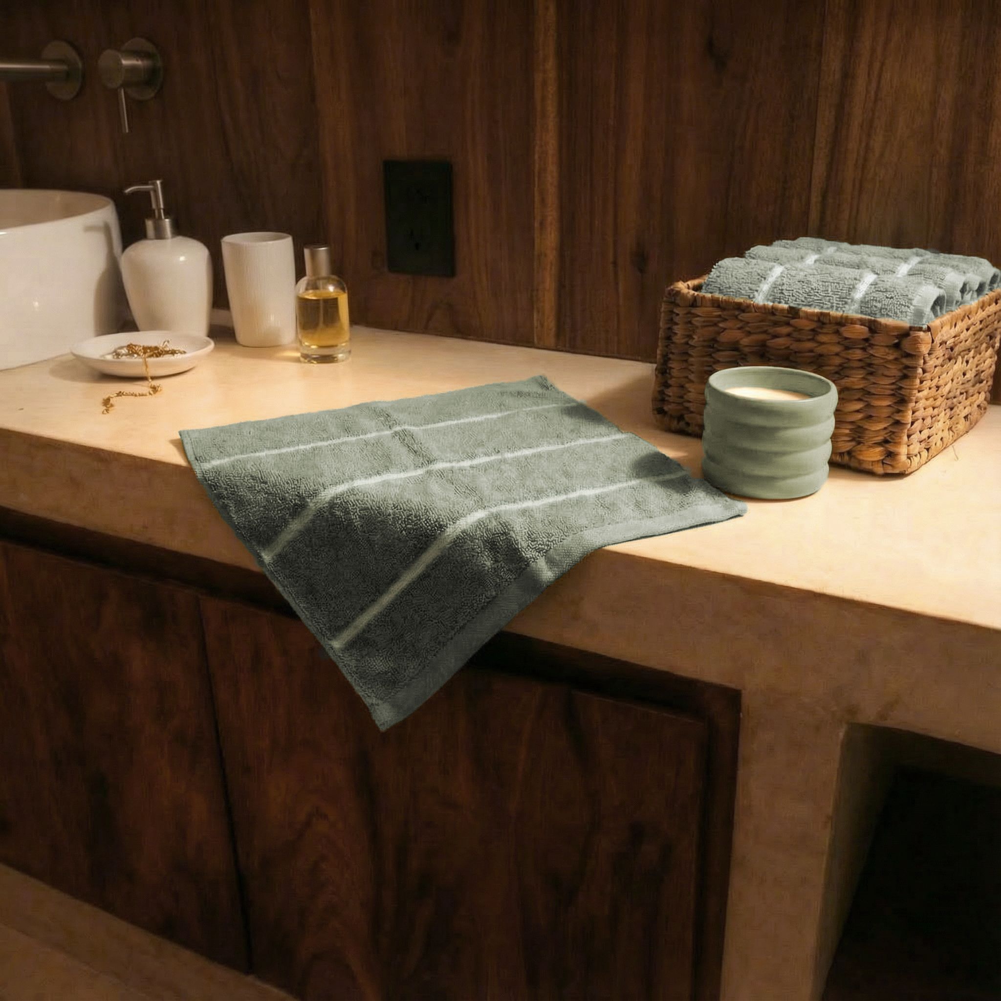 Soft sage tones. Ultraplush Australian cotton towels. Swiss-crafted ceramic candles. Crisp striped bedding. The Palma Collection brings together every detail that makes a space feel like a retreat—considered down to the last thread.
