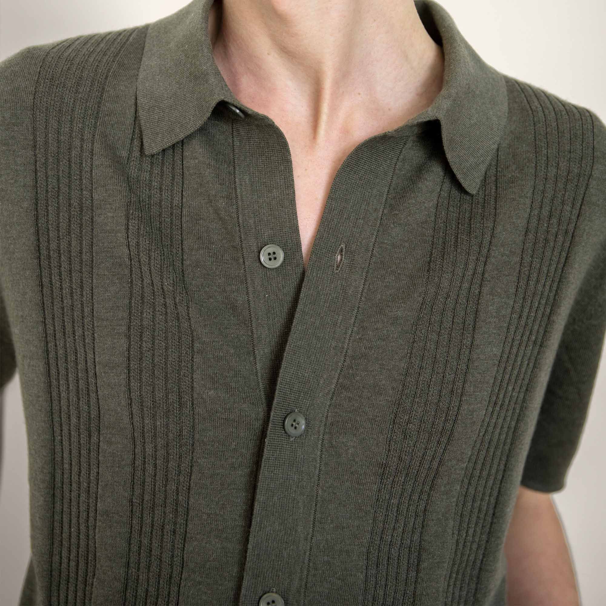 - Full placket polo with button closure