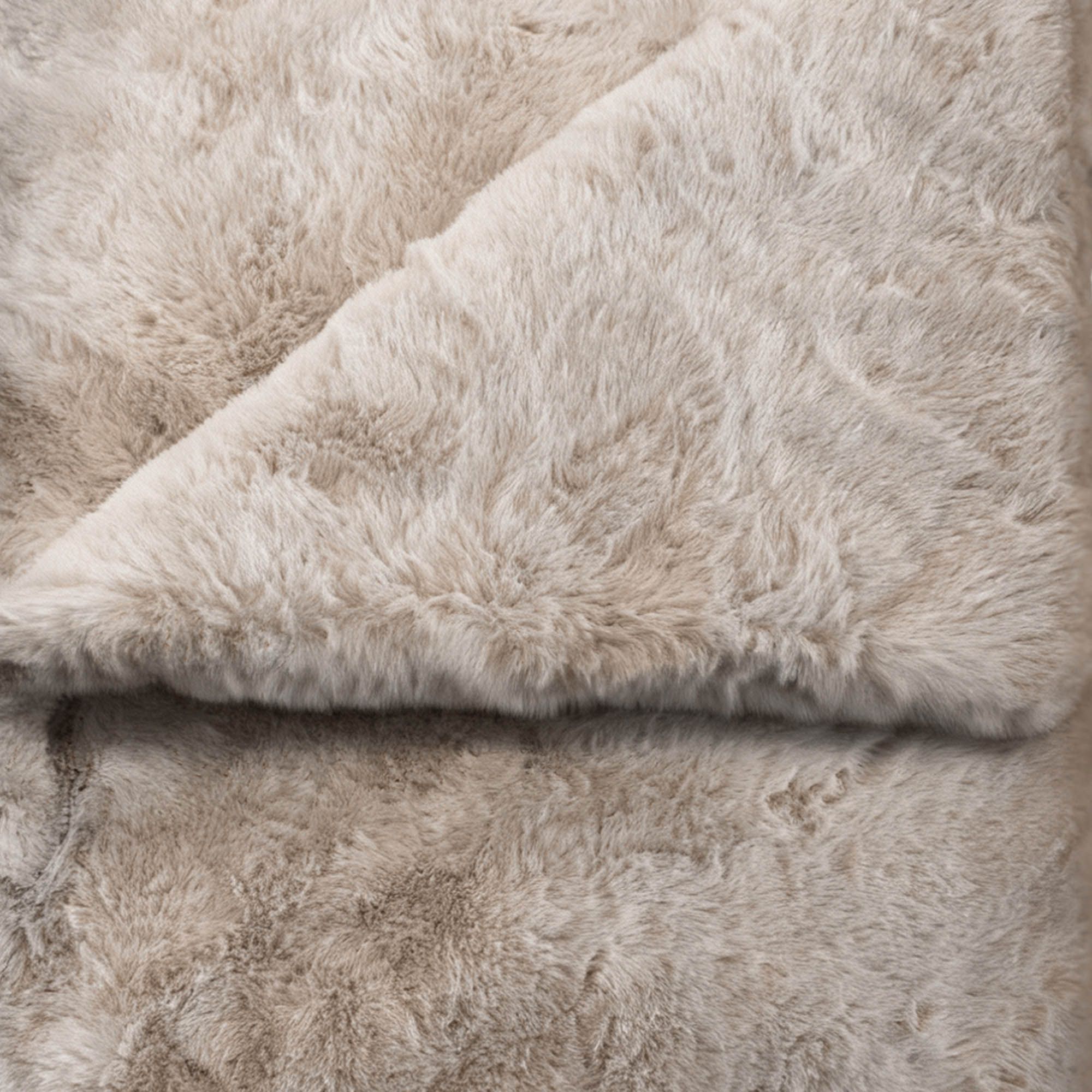 Double-sided, dense, and yielding to the touch. A quiet companion to the bed, the sofa, the hours in between—it draws close to skin, casts across space, and envelops in weighted warmth. Crafted from recycled fibers, indulgence without compromise. Transform any space with this sumptuous faux fur throw measuring 50" x 60". Perfect for draping across beds or creating a cozy accent anywhere in your home, providing excellent coverage for snuggling or sophisticated bedroom styling.